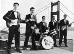 This is a photo of a local rock group circa 1959 called the "Kustom Keys" They played at various High Schools at rallys and they would play af dances. They used to throw dances at Brown's Hall in Mill Valley. From left to right " Winston Searles ( Leader ) Guitar / Otis Bigus ( Leader ) Singer Piano / Walt Lennon, Drums / Jack Lahargue, Sax / Dean Ferguson, Guitar. Winston recently found this photo in the Mill Valley Library ( of all places )